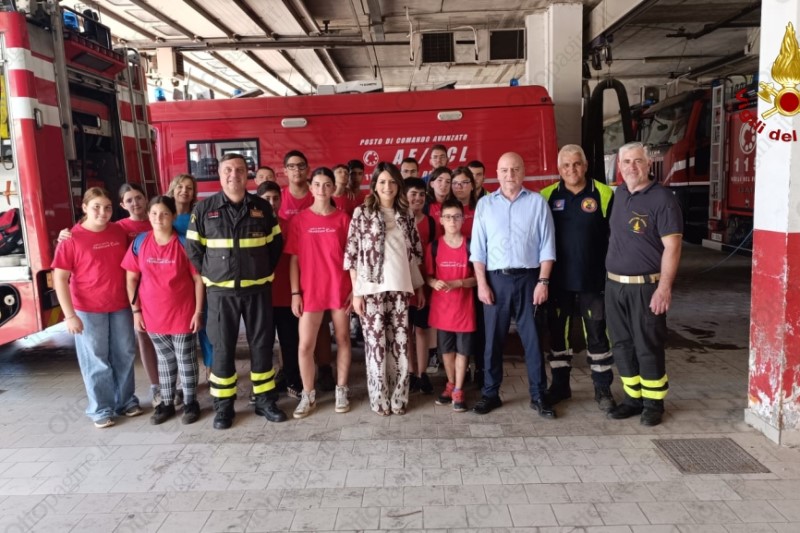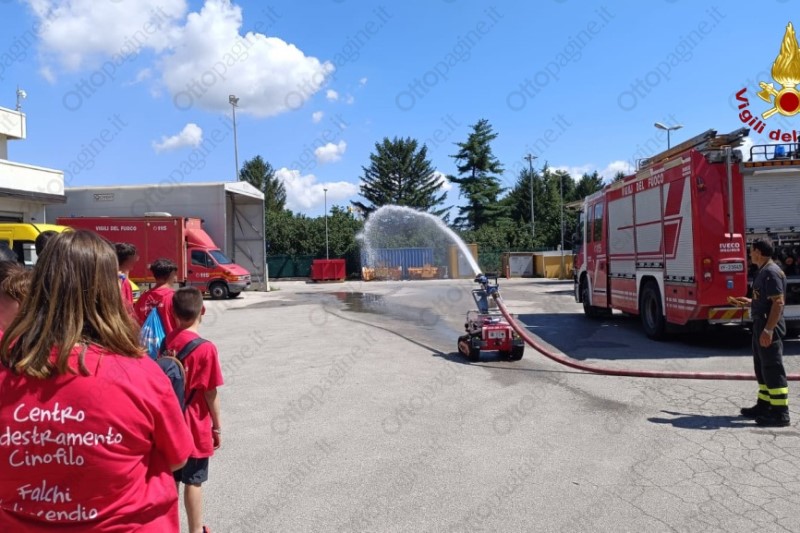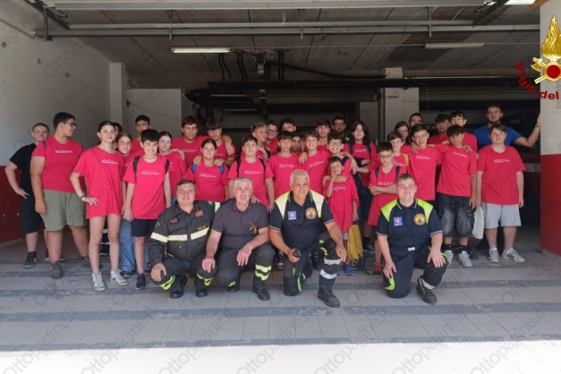 I bambini del campo scuola della protezione civile in visita ai vigili del fuoco