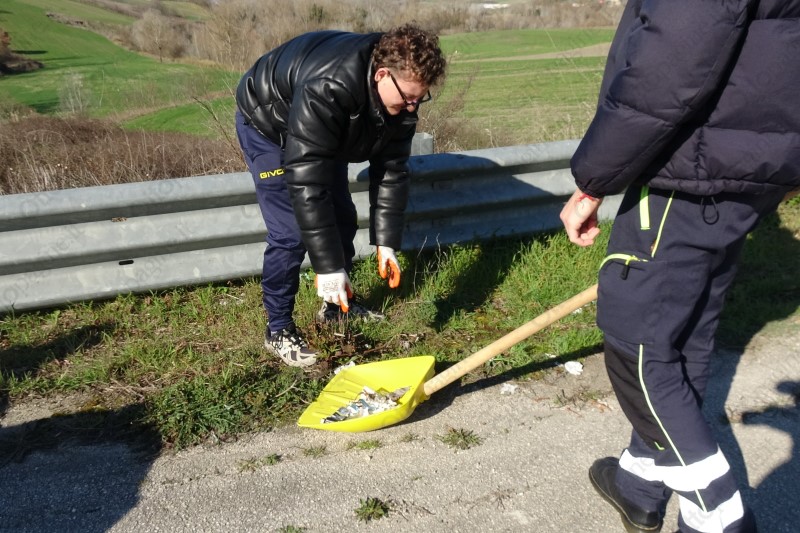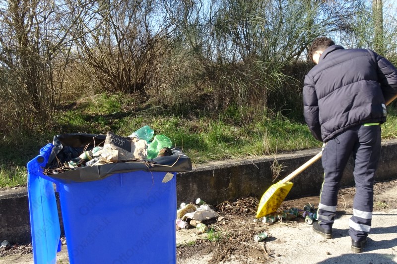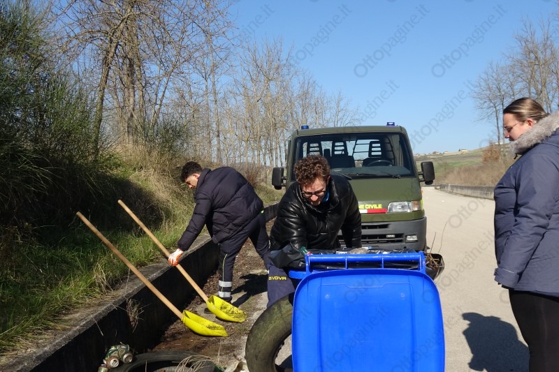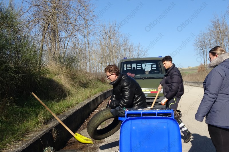 L'intervento della protezione civile flumerese lungo la strada provinciale 236