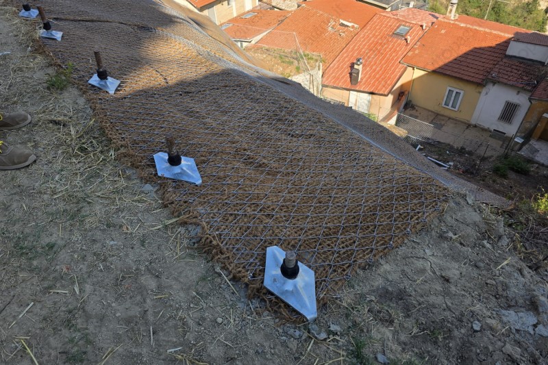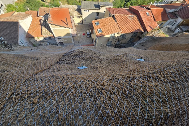 Micropali lungo il bordo sommitale della scarpata e reti chiodate lungo tutta la parete
