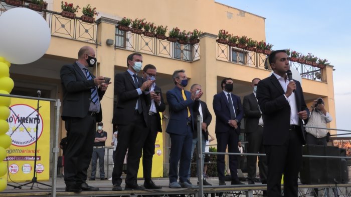 Lo ha detto il ministro ministro degli affari esteri e della cooperazione internazionale del Governo Conte, Luigi Di Maio ad Ariano Irpino, in una piazza gremita e ordinata nel rispetto delle norme anti covid. Presenti al suo fianco il sottosegretario Carlo Sibilia e i deputati Generoso Maraia e Michele Gubitosa. Nessuna contestazione. Presenti con uno striscione una delegazione di ex operai dell'Almec di Nusco. Nessun intoppo. Pubblico seduto in piazza attraverso apposita registrazione da parte dell'associazione Panacea. Servizio d'ordine coordinato dal vice questore Maria Felicia Salerno.