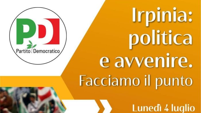 Lunedì 4 luglio, alle ore 18:30 e presso il Grand Hotel Irpinia (via Rivarano, Mercogliano), si terrà l'incontro "Politica e Avvenire, facciamo il punto". Promossa dagli esponenti del Partito Democratico del territorio, l'iniziativa si propone di aprire una fase di confronto politico basato, innanzitutto, sulla forza delle proposte e, ovviamente, con l'Irpinia al centro di ogni tipo di discussione.
