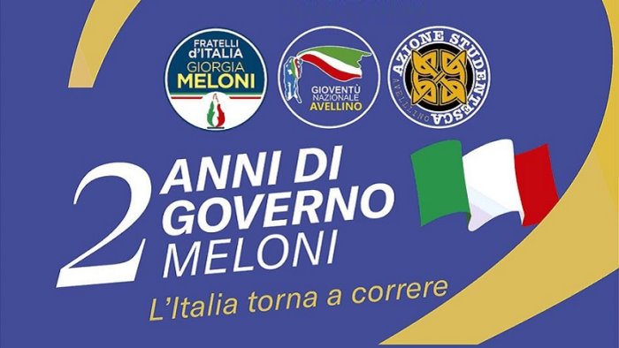 Domani il Coordinamento Provinciale di Fratelli d’Italia, Gioventù Nazionale e Azione Studentesca celebreranno i due anni del governo Meloni con un gazebo informativo allestito presso piazzetta Biagio Agnes ad Avellino, dalle ore 16 alle ore 20. "Il 22 ottobre 2022, il Presidente del Consiglio Giorgia Meloni e i Ministri del Governo hanno prestato giuramento nelle mani del Presidente della Repubblica. Il 22 ottobre 2024, il Governo Meloni, il primo nella storia d’Italia ad essere guidato da una donna, compie due anni ed è diventato il settimo Esecutivo più longevo della Repubblica": si legge nella nota diffusa dal coordinamento provinciale di FDI Avellino.