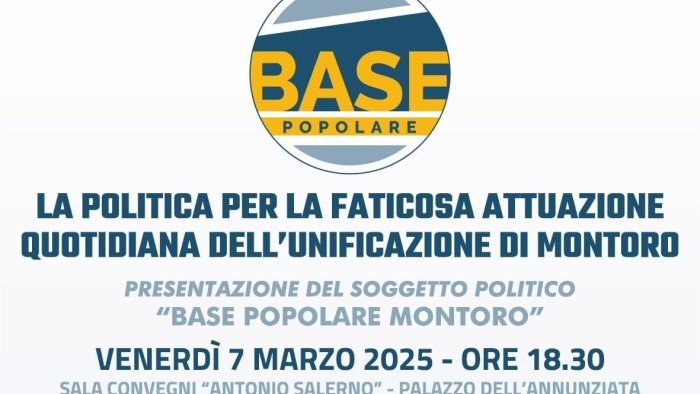 La politica per la faticosa attuazione quotidiana dell'unificazione di Montoro. Presentazione del soggetto politico "Base popolare Montoro".