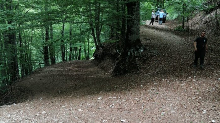 La granfondo di 45 chilometri e la mediofondo di 31 chilometri si snodano lungo i sentieri del Laceno con pendenze e fondi variabili, tratti di sottobosco e radure, terreno battuto e pietraie. La partenza e l’arrivo sono posizionati in prossimità del Parco Giochi Lacenolandia. Di qui gli atleti percorreranno il circuito asfaltato dell’altopiano, ex SS 368, in senso antiorario per circa 2,5 chilometri, dirigendosi verso il bivio che porta a Lioni. La strada asfaltata per Lioni verrà lasciata dopo complessivi 7 chilometri, svoltando a destra per l’impegnativa salita in asfalto che conduce a “Piano Sazzano”. Una volta giunti sul pianoro, dopo 9 chilometri circa, inizierà lo sterrato a destra. Arrivati alle Fontane del “Lagarello”, si percorrerà un lungo tratto sub-pianeggiante, per poi salire sul ”Cervarolo” fino al valico della “Valle di Giamberardino” (1480 metri di altitudine). Di qui con un bellissimo single track (passaggio singolo) si raggiungerà la strada battuta per la “Piana dell’Acernese”. Alla piana ci sarà la prima deviazione: verso destra il percorso corto, che raggiungerà l’altopiano e l’arrivo dopo altri 4 chilometri circa di strada sterrata ed asfaltata, verso sinistra il gruppo della Granfondo e della Mediofondo che proseguiranno attraversando la “Piana dei Vaccari”, per raggiungere dopo un breve strappo il “Colle del Leone”.
