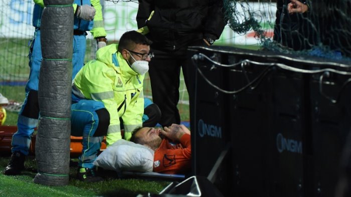 L'estremo difensore dei pugliesi, colpito alla testa, era stato trasferito al "Moscati"