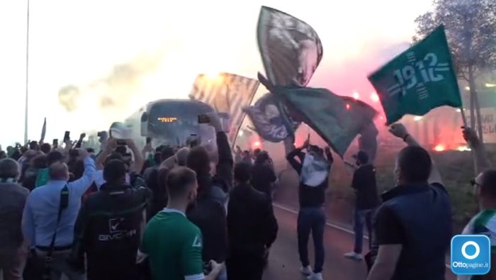 Un migliaio di tifosi hanno atteso il passaggio del pullman dell'Avellino radunandosi a Campo Genova, a due passi dallo stadio "Partenio-Lombardi", in vista della sfida con il Palermo, valida per il ritorno del primo turno dell fase nazionale dei playoff. I supporter biancoverdi, in risposta all'appello della Curva Sud, si sono dati appuntamento per incitare i lupi e dimostrare il proprio attaccamento e l'adesione è stata massiccia, strepitosa. Cori, striscioni, bandiere, fumogeni, fuochi d'artificio: una torcida impressionante, una dimostrazione di affetto e amore che stride con l'impossibilità di essere sugli spalti a causa del maledetto Covid. Famiglie e bambini al fianco degli ultras, una città intera si mobilitata per spingere Laezza e compagni al successo che varrebbe la qualificazione ai quarti di finale degli spareggi promozione.
