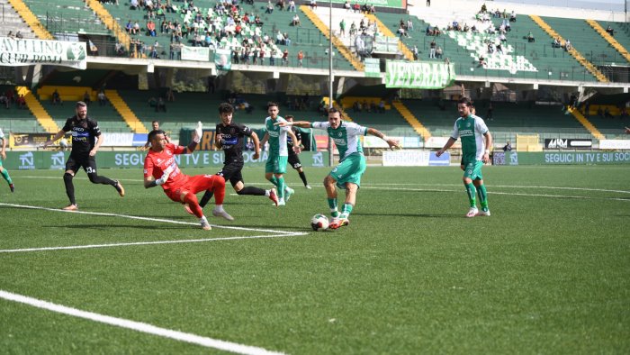 Potenza (3-5-2): Marcone 7; Matino 6, Gigli 5.5, Vecchi 5.5 (25’ st Nigro 6); Coccia 5.5, Zampa 5.5 (22’ st Costa Ferreira 6.5), Sandri 6, Bruzzo 5 (25’ st Baclet 6), Sepe 4.5 (1’ st Banegas 6); Salvemini 5.5 (22’ st Volpe 6), Ricci 6.5. All.: Gallo 6.