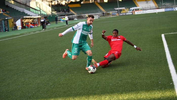 Virtus Francavilla (3-5-2): Nobile 6.5; Idda 5.5, Miceli 5.5, Caporale 4.5; Pierno 5, Prezioso 6, Tchetchoua 6.5, Carella 6 (31’ st Tulissi 6), Enyan 5 (40’ st Ingrosso sv); Ventola 5 (40’ st Ekuban sv), Perez 5. All.: Taurino 5.5.