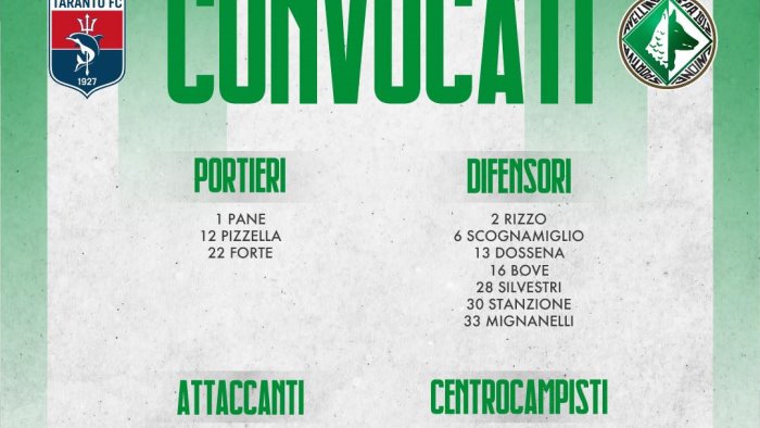 Taranto-Avellino: ecco i convocati di mister Gautieri per il match di domani in programma alle 14.30 allo stadio "Iacovone"