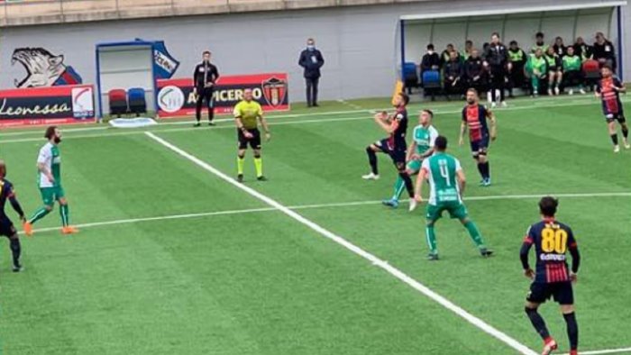Tre giri di lancette e Murano fa filtrare per Aloi, anticipato in uscita bassa da Viscovo, costretto a ricorrere alle cure dello staff medico per riprendere a giocare. Poco dopo lo stesso Murano gonfia la rete con un colpo di testa in tuffo, su invito dall’out mancino di Mignanelli, ma è tutto fermo: fuorigioco. Al 28’ dentro Reginaldo per l’infortunato Vivacqua. Ancora Mignanelli scodella in area di rigore un pallone per Plescia, che fa la torre per Aloi: il destro del capitano è centrale, telefonato; Viscovo non ha difficoltà a bloccarlo. Pitarresi prova a scuotere i suoi con una conclusione potente ma abbondantemente sul fondo. Poi, Viscovo anticipa di testa Murano, innescato da una gran palla di De Francesco. Si va al riposo sul risultato di 0-1.