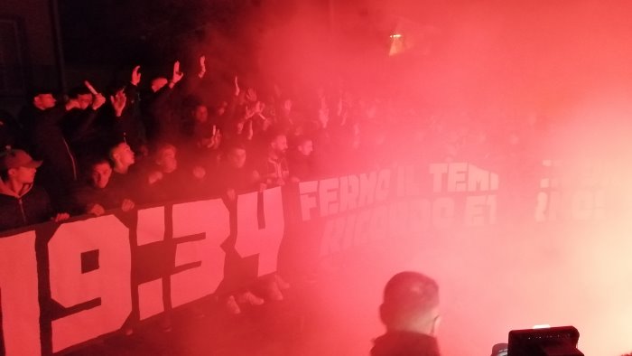 Come ogni anno la tifoseria organizzata biancoverde ha ricordato chi ha perso la vita nel sisma che sconvolse il capoluogo e la provincia di Avellino. Al grido di "Noi siamo terremotati" i partecipanti al corteo e all'iniziativa hanno atteso le 19.34, l'ora e il minuto della scossa di magnitudo Richter 6,9. "Fermo il tempo in un ricordo eterno", questo lo striscione esposto dalla Curva Sud Avellino nel tributo di questa sera, completato con la deposizione di fiori nella Piazza 23 novembre 1980 a pochi passi dalla Cripta del Duomo.