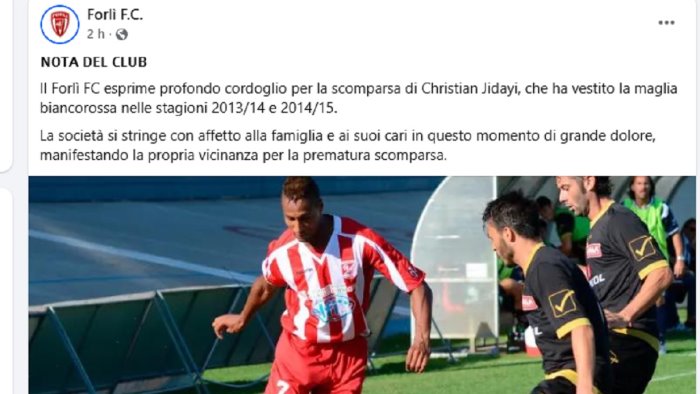 Dolore è stato espresso anche dal Forlì, società in cui il giovane ha militato. "Il Forlì FC esprime profondo cordoglio per la scomparsa di Christian Jidayi, che ha vestito la maglia biancorossa nelle stagioni 2013/14 e 2014/15. La società si stringe con affetto alla famiglia e ai suoi cari in questo momento di grande dolore, manifestando la propria vicinanza per la prematura scomparsa", si legge in una nota di cordoglio.