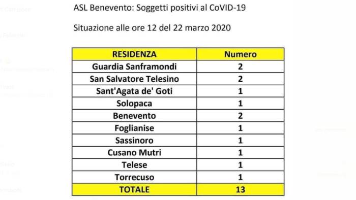 Ecco il dettaglio dei casi di positività al Coronavirus in provincia di Benevento, comune per comune, come riportato dalla Asl di Benevento: