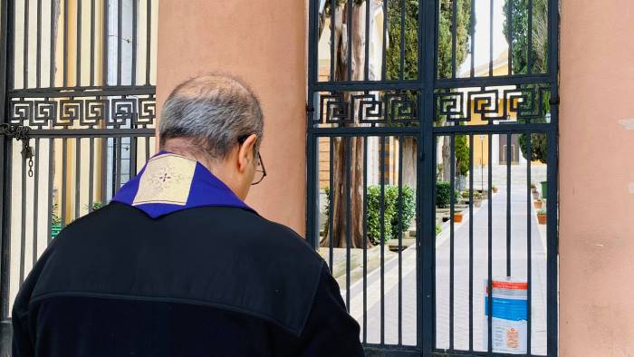 Ieri l'Arcivescovo di Benevento Felice Accrocca si è recato al Cimitero di Benevento per pregare. Il luogo sacro, chiuso da giorni, viene riaperto solo per la benedizione delle salme che vengono tumulate in gran fretta e alla presenza di un solo familiare.