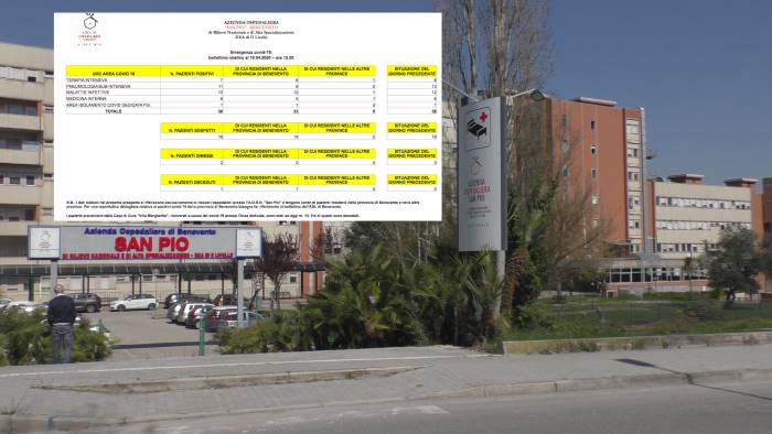 Dei 66 pazienti accertati positivi al covid 19, 51 sono residenti nella provincia di Benevento. Ad oggi la situazione presso l'ospedale del capoluogo sannita è la seguente: 38 pazienti ricoverati, di cui 33 residenti nella provincia di Benevento. Pazienti provenienti dalla Casa di Cura "Villa Margherita", primo focolaio di coronavirus nel Sannio, ricoverati a causa del presso l'Area dedicata, sono stati ad oggi 15. Tre di questi sono deceduti.
