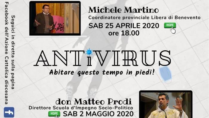 Una riflessione sulle vittime della criminalità organizzata, e in particolare su Raffaele Delcogliano, Aldo Iermano e Tiziano Della Ratta, di cui proprio oggi 27 aprile ricade per tutti e tre l’anniversario dalle loro brutali uccisioni, non è solo dovuta da parte di Martino, ma pienamente sentita. “La memoria, fatta di impegno e responsabilità, è l‘unica moneta che abbiamo per estinguere il nostro debito di riconoscenza e gratitudine. Dobbiamo avere la profonda consapevolezza che queste vittime hanno lottato contro le mafie e non si sono arrese. Noi tutti faremo veramente memoria di loro quando faremo nostra l’eredità di chi ha pagato con la vita, continuando noi per primi a percorrere quel sentiero”. Far sì che il fare memoria, dunque, non sia o non resti solo un esercizio retorico, dipenderà sempre dalle scelte quotidiane che facciamo, dal nostro impegno quotidiano che decidiamo di dare nell’abitare questo territorio sannita. “Quel “Fate questo in memoria di me”, pronunciato da un giovane di 33 anni, Gesù, – sottolinea il referente provinciale di Libera Benevento – va attualizzato oggi per fare in modo che i sacrifici fatti da chi ha pagato con la vita non siano stati inutili. E da credenti – conclude Martino – abbiamo bisogno di una fede che sia viva e che riesca a stare vicina agli ultimi, vicina a chi ha più bisogno: dalle vittime del racket dell’usura a quelli delle dipendenze come gioco d’azzardo e droga, da chi ha perso il lavoro ed oggi non ha più in reddito ai nostri fratelli migranti. Tutto questo vuol dire togliere terreno alle mafie. Se ognuno di noi semplicemente facesse con onestà, nel suo piccolo, ciò che è chiamato a fare tutti i giorni nella sua vita, noi avremmo già risolto in larga parte il problema delle mafie e della corruzione nel nostro Paese. In questo modo avremmo onorato la memoria di Raffaele, di Aldo e di Tiziano. Perché sono morti per difendere l’onestà e per consegnarci un territorio migliore di quello che loro avevano trovato”. L’intervista, condotta da Vittoria Massaro, delegata dell’Ac diocesana per il Presidio di Libera “Valle Caudina e Valle Telesina” (intitolato e dedicato proprio alla memoria di Raffaele Delcogliano e di Aldo Iermano), s’è conclusa con una sessione di domande fatte dal pubblico che ha partecipato che hanno toccato altri aspetti, dalla necessità di essere sentinelle sul nostro territorio (come segni di speranza) all’urgenza degli aiuti economici europei e nazionali per far arretrare di qualche passo le mafie che, spesso, arrivano prima nei luoghi disagiati e nelle famiglie in difficoltà, prima dello Stato e del mondo del volontariato. “Il procuratore Policastro, in una diretta di qualche settimana fa, ci disse che se i soldi non ce li darà l’Europa, ce li daranno le mafie con delle serie conseguenze sulla stabilità democratica del nostro paese. Ed è per questo che lo Stato deve essere molto vigile e che la società civile deve essere monitorante e deve avere conoscenza del proprio territorio e consapevolezza dei fenomeni mafiosi. Significa questo abitare il territorio da sentinelle attente. Laddove non ci sono conoscenza e consapevolezza, le mafie troveranno sempre una grande prateria davanti a loro”. Il secondo appuntamento con le interviste di “Antivirus” ci sarà sabato 2 maggio, sempre alle ore 18 in diretta dalla pagina fb dell’Ac diocesana, con il direttore della Scuola d’Impegno Socio-Politico della Diocesi don Matteo Prodi, che proverà a farci entrare meglio nella lettera del nostro vescovo diocesano mons. Battaglia sui passi, indicati con chiarezza, che la società civile dovrebbe imparare a percorrere, camminando insieme.