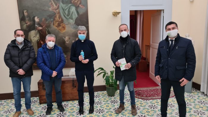Dal Sannio a Napoli per consegnare la statuetta dell'infermiere a monsignor Domenico Battaglia. Questa mattina il vice presidente nazionale di Coldiretti Gennarino Masiello con il direttore della Coldiretti di Benevento, Gerardo Dell'Orto e il rappresentante di Confartigianato Salvatore Carlo, ha consegnato a monsignor Domenico Battaglia la statuetta raffigurante un'infermiera che vuole essere un omaggio al personale sanitario in prima linea contro il covid. Per l'occasione il presidente Masiello ha donato al prossimo arcivescovo di Napoli il libro "La gente dei campi", che racconta la storia della Coldiretti.