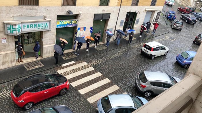 Una lunga fila, invece, si è registrata per tutta la mattinata dinanzi alla Farmacia aperta per il turno pomeridiano e festivo ci Corso Vittorio Emanuele.