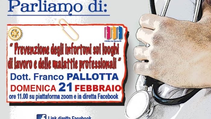 Ancora un importante appuntamento previsto per domenica 21 febbraio alle ore 11.00 (su piattaforma zoom) con il Dott. Francesco Pallotta, Direttore Unità Operativa Complessa Igiene e Medicina del Lavoro ASL BN che tratterà la complessa tematica “Tutela della salute negli ambienti di lavoro”.