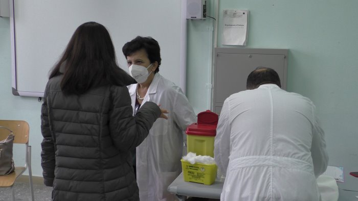 Detto fatto. Nella giornata di oggi saranno oltre 200 le persone vaccinate. Dopo l'accettazione, i docenti, il personale scolastico Ata hanno raggiunto di volta in volta le tre classi dove nel frattempo i medici e gli infermieri avevano allestito piccoli ma pratici ambulatori con i frigoriferi portatili per mantenere costante la temperatura dei vaccini. Una volta all'interno qualche piccola ma essenziale avvertimento dai medici che non hanno esitato a tranquillizzare e a rispondere alle domande dei prossimi vaccinati. In particolare, la dottoressa Annarita Citarella, dirigente Asl del Servizio Epidemiologia e Prevenzione non ha esitato nel rispondere a chi chiedeva informazioni, specialmente sugli effetti collaterali. In particolare a preoccupare la febbre. In molti casi, infatti, dopo alcune ore dalla somministrazione, si è presentato un innalzamento della temperatura. Tutto normale, a detta degli esperti sanitari. La febbre sarebbe infatti provocata da una naturale reazione del corpo al vaccino. Sintomi che comunque scompaiono nel giro di poche ore e che vanno curati laddove se ne dovesse presentare la necessità con l'assunzione della classica tachipirina.