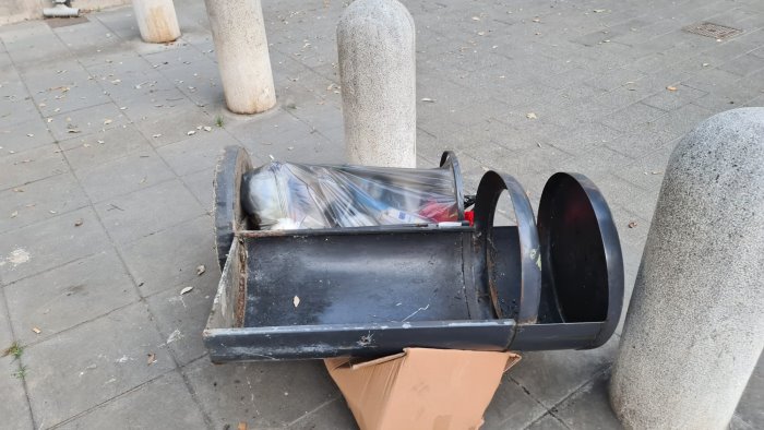 Cestini vandalizzati in viale Principi di Napoli, la denuncia dell'Asia