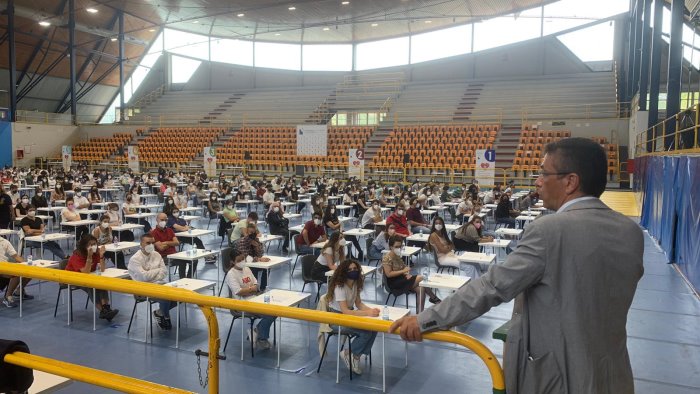 Tutte le procedure si sono svolte regolarmente, normale e composto il flusso dei candidati per l’identificazione e l’entrata nella grande aula allestita per l’occasione. Quest’anno l’accesso prevedeva anche il possesso del green pass. I 100 minuti determinanti per il futuro dei candidati sono scattati puntuali alle ore 13. Alle ore 14.40 è terminata la prova.
