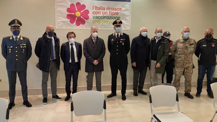 Il dottore Volpe ha accolto presso il centro vaccinale Covid nella caserma Pepicelli anche il presidente del Tribunale, Marilisa Rinaldi e il procuratore capo di Benevento, Aldo Policastro. “Nel Sannio sia la campagna di vaccinazione contro il Covid – ha poi spiegato ancora Volpe – che quella contro l'influenza stagionale fa registrare ottimi risultati anche grazie al supporto delle istituzioni e dei rappresentanti delle forze armate al nostro fianco in qualsiasi occasione”. E la caserma dell'Arma “Pepicelli”, ormai da un anno in uso all'Asl per la lotta al coronavirus, rappresenta appieno la sinergia tra Asl e istituzioni che, con l'impiego dell'Associazione nazionale Polizia di Stato, Protezione Civile e Croce Rossa, stanno continuando nella non semplice misisone di vaccinare tutta la popolazione.