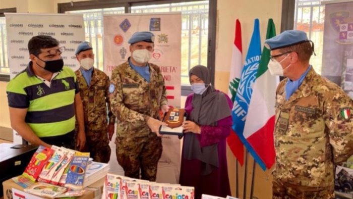 L’associazione “Ampio Raggio”, presieduta da Pio Antonio Autorino e coordinata dal sannita Eugenio Fortunato ha donato materiale ludico-didattico ed informatico alla struttura di Al Boustan. Il trasporto e lo stoccaggio è stato effettuato dai militari alpini che hanno donato ai più piccoli quaderni, penne, colori, e tanto altro materiale didattico. Un impegno concreto, che ha visto la direttrice scolastica, la professoressa Nibal Ataya, ringraziare di cuore le penne nere della Brigata Taurinense.