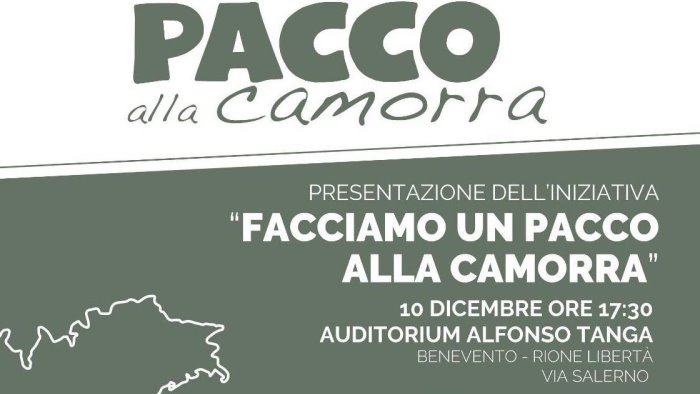 “Facciamo un pacco alla camorra” è diventato un appuntamento fisso anche per il territorio sannita che quest'anno si rinnova proponendo un evento di presentazione, ispirato alla figura della donna, promosso dal Coordinamento Provinciale di Libera Benevento, in collaborazione con l'Orchestra Filarmonica di Benevento, l'ANPI Benevento, la Compagnia Balletto di Benevento, la FIDAPA Benevento e la CGIL di Benevento. L'iniziativa avrà luogo venerdì 10 Dicembre alle 17.30 presso l'Auditorium “Alfonso Tanga” in via Salerno a Benevento.