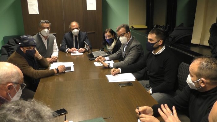 Al tavolo, oltre all'assessore Ambrosone, l'amministratore dell'azienda, Mauro Trotta - e due suoi collaboratori -, con i sindacati Cgil (Giuseppe Anzalone), Cisl (Edoardo Marra), Uil (Cosimo Pagliuca) e l'Ugl (Giuseppe Minicozzi).