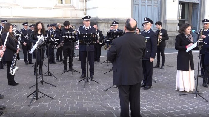 Questa mattina, lungo Corso Garibaldi, nei pressi della Prefettura si è tenuta l'esibizione della banda del corpo di polizia penitenziaria con la Simphonic band del Conservatorio Nicola Sala.