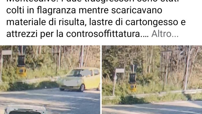 "L'ecopunto in questione- prosegue il post di denuncia su facebook - è quello di contrada Montecalvo. I due trasgressori sono stati colti in flagranza mentre scaricavano materiale di risulta, lastre di cartongesso e attrezzi per la controsoffittatura.