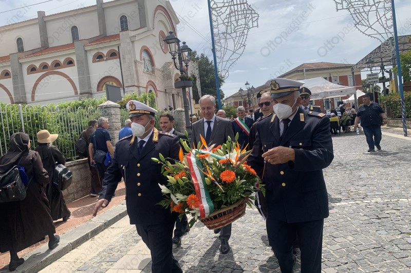 “E' per noi un giorno importantissimo, tornano appieno tutte le celebrazioni con la processione per le strade del paese. Tanta l'emozione e l'onore, soprattutto di ricevere qui il cardinale Semeraro. A lui ci affidiamo affinché ci aiuti ad adempiere al ruolo che la storia ha affidato a questo territorio, luogo che unisce, zone che inducono alla riconciliazione”, il commento del sindaco Salvatore Mazzone che come da tradizione accompagnato ha proceduto prima alla cerimonia dell’omaggio floreale alla statua del Santo, poi l’accensione della lampada votiva.