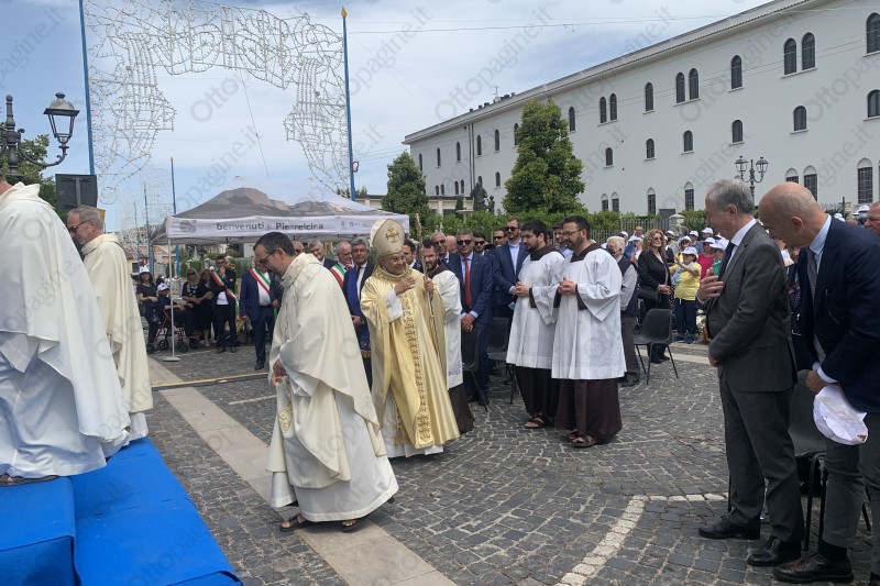 E ai cittadini di Pietrelcina e alle istituzioni presenti si è rivolto il cardinale Marcello Semeraro, Prefetto della congregazione dei Santi, che dall'altare allestito in piazza si è detto “grato dell'invito a celebrare con voi che siete i suoi concittadini il 135esimo anniversario della nascita. Padre Pio è un santo che mi è caro per più ragioni, la prima perché sono nativo della terra di Puglia dove San Pio ha vissuto per tanti anni e ha lasciato tanti segni non soltanto della sua santità ma anche della sua carità”. Ed ancora tanti i ricordi, gli aneddoti, i messaggi legati al santo e alla sua storia: “Quante persone sono rimaste affascinate dall'incontro con Padre Pio”. “Ho accettato volentieri di giungere sin qui, giungere come pellegrinaggio”.