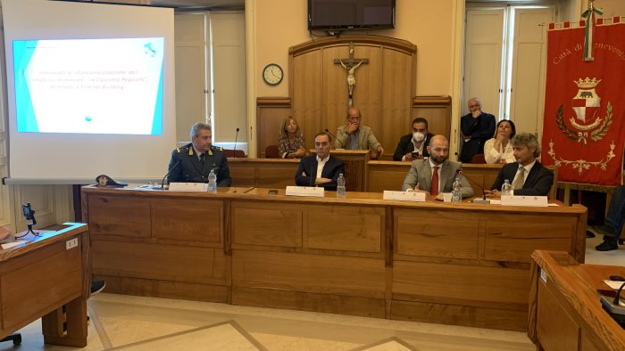 Iniziati i lavori all'ex Caserma Pepicelli a Benevento, oggi a Palazzo Mosti la presentazione del progetto esecutivo degli interventi programmati presso la struttura di viale Atlantici dove sarà realizzata la cittadella degli uffici pubblici nonché la nuova sede del comando provinciale della Guardia di Finanza. In questa fase si tratta dei lavori del primo lotto, che riguardano proprio la parte della struttura che ospiterà le fiamme gialle, il progetto esecutivo è stato presentato oggi a Palazzo Mosti alla presenza dei dirigenti del Demanio, del comandante regionale della Guardia di Finanza e del sindaco Mastella che ha ricordato l'importanza dell'opera che prevedere in questa prima fase “15 milioni di investimenti, ma tutta l'opera entro il 2026 sarà di 50milioni. Una cifra enorme che determinerà una qualità dei servizi per i cittadini ed anche per coloro che arrivano dalla provincia. Una mole di investimenti che prevede all'interno della struttura una serie di servizi. Per quanto mi riguarda oggi è una bella giornata”.