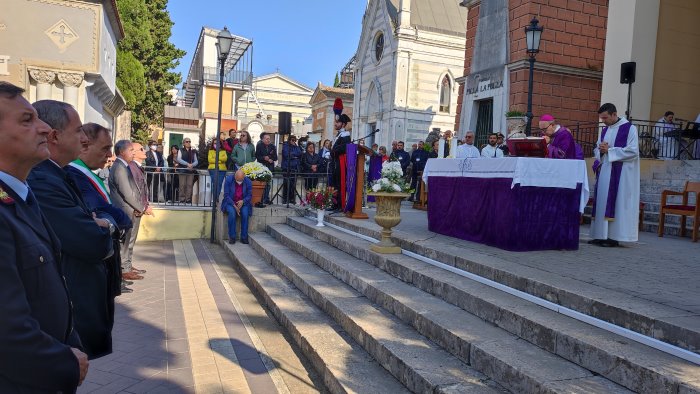 Questa mattina la consueta celebrazione all'aperto, all'esterno della chiesa del cimitero con i fedeli e le autorità.