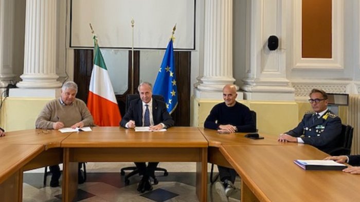 Presenti alla firma del protocollo il Questore dr. Edgardo Giobbi, il Vice Comandante Provinciale dei Carabinieri col. Gaetano Restelli e il Comandante Provinciale della Guardia di Finanza col. Eugenio Bua.