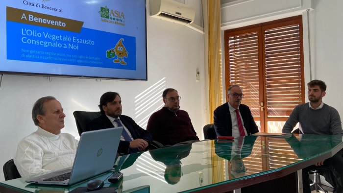 L'Asia ed il comune di Benevento hanno presentato questa mattina, presso la sede dell'Azienda, il nuovo servizio di raccolta stradale degli oli esausti che partirà tra qualche giorno in città. Alla presenza dell'assessore all'Ambiente, Alessandro Rosa, del consigliere comunale Marcello Palladino, del capo settore tecnico Asia, Gino Mazza, del responsabile area tecnica, Fernando Capone e di Domenico Citarelli, rappresentante della Lem Linea Ecologica Mangia sono state illustrate alla stampa le nuove modalità, pensate per i cittadini, per incrementare e rendere più agevole il conferimento di questo particolare tipo di rifiuto.