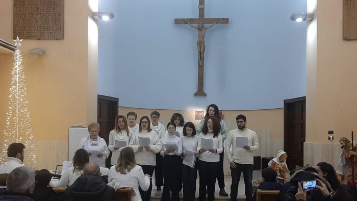 Sono stati eseguiti i celebri brani del periodo dedicato alla celebrazione del Santo Natale come “Adeste Fidelis” ed Astro del Ciel”. Ogni canto è stato preceduto da una specifica spiegazione che ha dato la possibilità al numeroso pubblico presente di carpire la bellezza dei tradizionali canti natalizi. Il suggestivo concerto si è chiuso con il classico “Tu Scendi dalle Stelle” cantato da tutta la comunità con gli occhi rivolti verso la statua di Gesù Bambino. Al termine della serata l’amministratore parrocchiale don Leonardo Lepore ha ringraziato il coro per la meravigliosa esibizione e rivolgendosi ai presenti ha detto “La parrocchia è una grande famiglia formata da tante famiglie che donano i propri talenti”. La recita dell’Ave Maria e la benedizione finale di don Leonardo hanno concluso la serata.