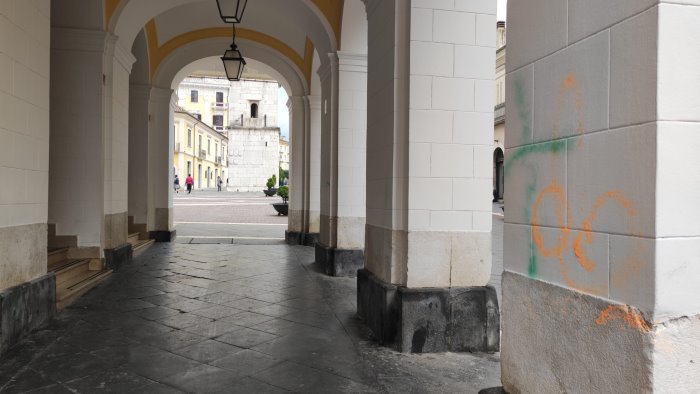 Disegni osceni sui pilastri del portico del Teatro Comunale di Benevento.