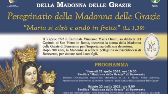 In occasione del III centenario dell'incoronazione della Madonna delle Grazie, la statua sarà portata in pellegrinaggio in vari centri del Sannio. Un evento eccezionale organizzato nei minimi dettagli dai Frati Minori del Sannio e dell'Irpinia e dall'arcidiocesi di Benevento.