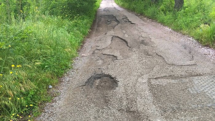 Ovviamente abbiamo la certezza che le strade resteranno così, come formaggi svizzeri, ancora per tanto tempo e che, forse, in previsione delle prossime elezioni, vedranno qualche carriola d’asfalto".