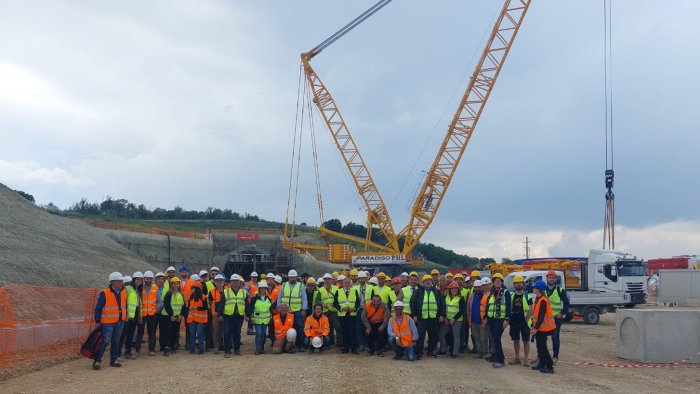 Dopo l’arrivo al campo base di Telese, in provincia di Benevento, il gruppo si è spostato alla volta del viadotto in costruzione sul fiume Calore per poi raggiungere l’imbocco di una galleria artificiale (lotto Cancello – Frasso - Telese). La visita si è conclusa nel cantiere dell’imbocco della galleria di Grottaminarda, in provincia di Avellino, (lotto Apice – Hirpinia) dove è in corso il montaggio della talpa meccanica (TBM).