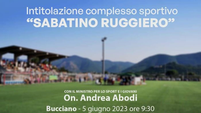 Lunedì 5 Giugno, a partire dalle ore 9:30, si avrà a Bucciano, in provincia di Benevento la cerimonia di intitolazione del locale complesso sportivo alla figura di Sabatino Ruggiero, già vicesindaco di Bucciano scomparso nel 2020.