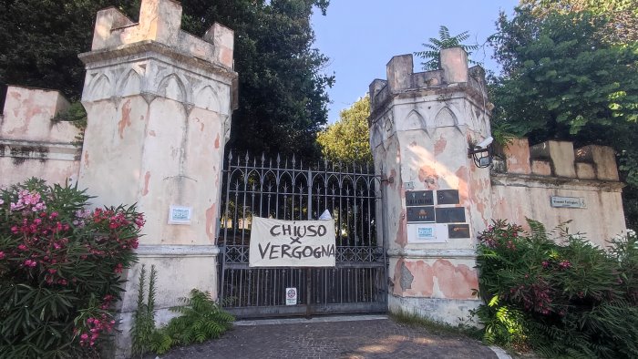 “Chiuso per vergogna”. Tre parole sullo striscione di protesta affisso sul cancello di Villa dei Papi a Benevento. Evidentemente fa infuriare la chiusura del parco verde di Pacevecchia, decisa nello scorso maggio per l’accertata presenza di cinghiali nei giardini che circondano l'edificio. L'area riaperta qualche anno fa, grazie ad un'azione congiunta di Provincia e Comune, resta ancora chiusa. Un giardino meta di tanti visitatori e di cui, probabilmente, si sente la mancanza.