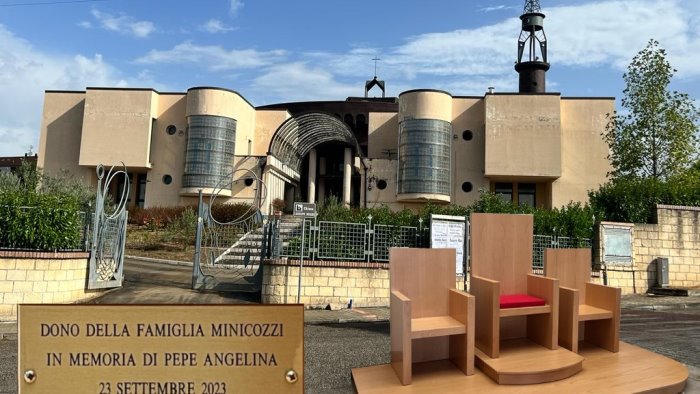 La sede presidenziale, realizzata da Tempium Artische, andrà a completare l’arredo della Chiesa parrocchiale, è composta dalla sedia del celebrante (che presiede la celebrazione) e dalle sedie dei due concelebranti principali, donata alla Parrocchia dalla famiglia Minicozzi (Antonio, Pio e Michele titolari della “Agrisemi Minicozzi”) in memoria della signora Angelina Pepe.