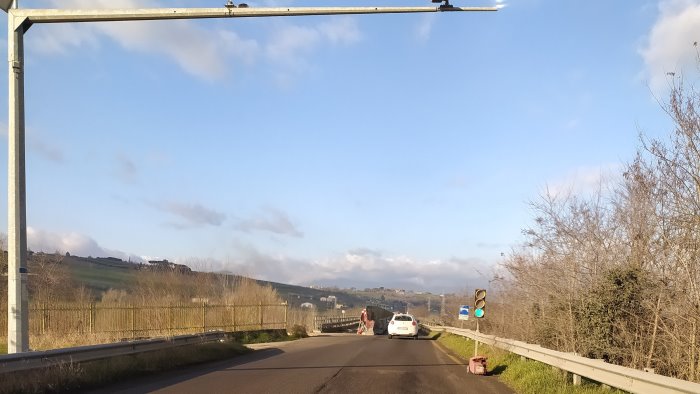 Tratto di strada interessato da un cantiere in corrispondenza del lungo ponte e che crea disagi e interminabili attese per gli automobilisti. Il lettore suggerisce poi anche una soluzione per eliminare i semafori: utilizzare una vecchia strada laterale al ponte...