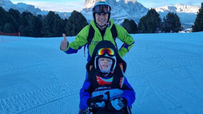 “L’esperienza dello sciare con il dualsky per Salvatore è iniziata già da un po’ di anni – spiega ancora papà Daniele -, aveva 4 anni la prima volta che ha provato la sensazione di salire su una seggiovia e di sciare sulle piste insieme alle sue sorelle come tutti gli altri sciatori normodotati.