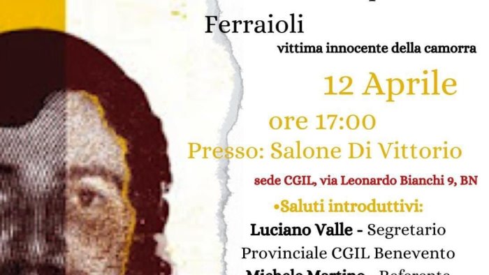 Si svolgerà venerdì 12 Aprile alle ore 10, nel salone “Di Vittorio” presso la Camera del Lavoro della CGIL di Benevento, un evento in memoria di Antonio Esposito Ferraioli, vittima innocente della camorra. Affettuosamente chiamato Tonino.