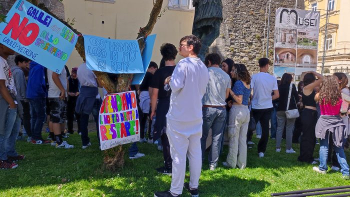 "Perchè farci trasferire dal nostro istituto se lo stesso dovrà ospitare un'altra scuola?". E' in buona sostanza l'interrogativo della comunità scolastica dell'Istituto Galilei – Vetrone di Benevento che questa mattina ha tenuto una manifestazione davanti alla Rocca dei Rettori. Studenti, genitori e alcuni docenti hanno protestato per chiedere una soluzione diversa in merito a quelle prospettate per consentire i lavori di edilizia scolastica per dare corso ad un programma di abbattimento, ricostruzione, ristrutturazione ed efficientamento energetico finanziato dal PNRR e dalla BEI, che riguarderanno le tre scuole di Piazza Risorgimento: il Liceo Classico Giannone, l'Istituto Alberti e appunto il Galilei Vetrone.